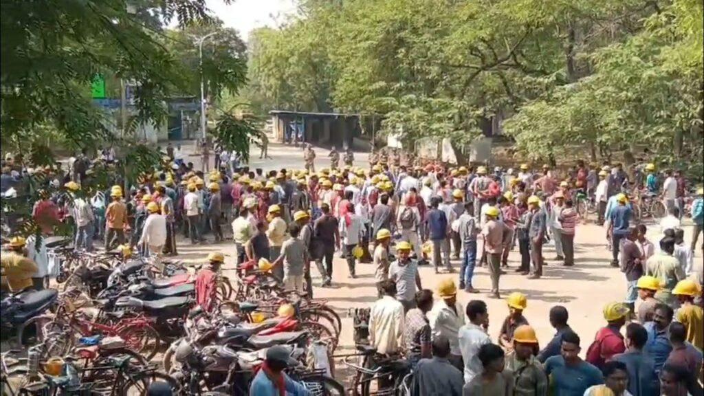 बुधवार की सुबह एनटीपीसी प्लांट के गेट नंबर 2 के पास बड़ी तादाद में ठेका मजदूर जमा हो गए। नाराज मजदूरों ने गेट जाम कर दिया। कर्मियों ने बताया कि प्रबंधन और ठेका कंपनी की मनमानी से मजदूरों का लगातार शोषण हो रहा है। मजदूरों का आरोप है कि प्रबंधन और ठेकेदार के बीच आपसी सांठगांठ है। कर्मियों ने केन्द्रीयकृत वेतन दर और 8 घंटे ड्यूटी की मांग को लेकर प्रदर्शन किया। उनका कहना है कि निर्धारित समयावधि से अधिक कार्य पर ओटी दिया जाए। सरकरा द्वारा निर्धारित न्यूनतम वेतनमान से उन्हें वंचित किया जा रहा है। प्रदर्शन को लेकर प्रबंधन के अधिकारी भी मौके पर मौजूद रहे। मजदूरों से वार्ता कर मांगों के निराकरण का प्रयास किया गया। बताया जा रहा है कि घंटों चले प्रदर्शन के बाद मामला आश्वासन पर शांत हुआ।
