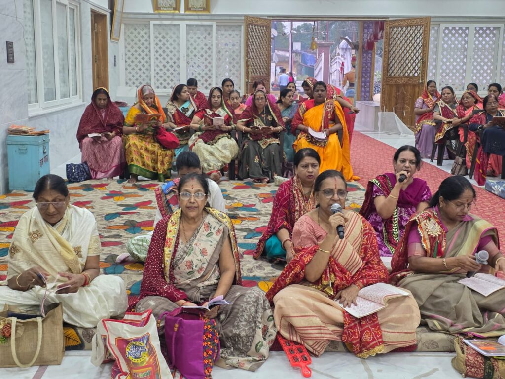 कोरबा – प्रत्येक माह की अमावस्या को श्री सप्तदेव मंदिर में माॅ श्री राणीसती दादी का भव्य संगीतमय मंगलपाठ किया जाता है। इसी तारतम्य मेे चैत्र कृष्णपक्ष अमावस्या दिनाॅक 18.03.2026 दिन बुधवार को श्री सप्तदेव मंदिर में दादी जी का सिंघारा किया गया एवं सिंघारा उत्सव मनाया गया। सायं 4.00 बजे से सायं 7.00 बजे तक माॅ श्री राणीसती दादी का संगीतमय मंगलपाठ श्रीमती लीना अग्रवाल एवं पार्टी के द्वारा किया गया जिसमें उपस्थित मंगलपाठी बहनो ने अपने पूर्ण परिधान नथ, चूडा चुनडी के साथ एक लय एवं एक राग में संगीतमय मंगलपाठ कर पूरा वातावरण भक्तिमय कर दिया।