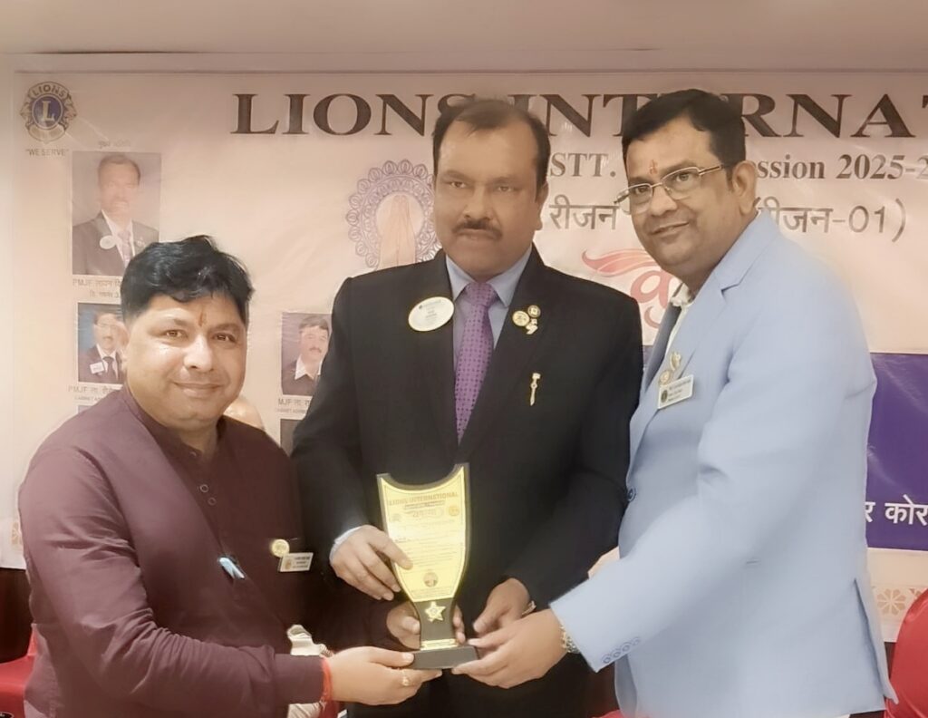 विश्व की अग्रणी समाजसेवी संस्था इंटरनेशनल एसोसिएशन ऑफ लायंस क्लब्स डिस्ट्रिक्ट 3233 सी के सत्र 2025-26 की रीजन 1 की रीजन कॉन्फ्रेंस “काव्या” का आयोजन 5 अप्रैल 2026 रविवार मंगलवार को लायंस क्लब इंटरनेशनल के लायंस क्लब डिस्ट्रिक्ट 3233 सी के डिस्ट्रिक्ट लायन विजय अग्रवाल के मुख्य आतिथ्य में एवं रीजन 1 के रीजन चेयरपर्सन लायन कैलाश नाथ गुप्ता की अध्यक्षता में होटल ब्लू डायमंड में सम्पन्न हुई । जिसमे लायंस क्लब डिस्ट्रिक्ट 3233 सी के रीजन 1 के रीजन चेयरपर्सन लायन कैलाश नाथ गुप्ता ने लायंस क्लब कोरबा एवरेस्ट के चिकित्सक सदस्य लायन डॉ. नागेन्द्र नारायण शर्मा को उनके विशेष चिकित्सा गतिविधियों के लिये तथा चिकित्सा के क्षेत्र में किये गये उत्कृष्ट सेवा कार्यों के लिये उन्हें बेस्ट हेल्थ प्रोजेक्ट के अंतर्गत स्पेशल सर्विस अवार्ड से सम्मानित किया। यह सम्मान उन्हें रीजन कॉन्फ्रेंस के मुख्य अतिथि लायंस क्लब डिस्ट्रिक्ट 3233 सी के डिस्ट्रिक्ट गवर्नर लायन विजय अग्रवाल अध्यक्ष रीजन चेयरपर्सन कैलाश गुप्ता ने रीजन कॉन्फ्रेंस “काव्या” के गरिमामय कार्यक्रम में प्रदान किया। इस रीजन कॉन्फ्रेंस “काव्या” में लायंस क्लब इंटरनेशनल डिस्ट्रिक्ट 3233 सी के डिस्ट्रिक्ट गवर्नर लायन विजय अग्रवाल, डिस्ट्रिक्ट कैबिनेट सेक्रेटरी लायन बी.के.सिंह, रीजन चेयरपर्सन कैलाश गुप्ता, पास्ट डिस्ट्रिक्ट गवर्नर लायन लायन एम.डी. माखीजा, लायन शैलेश अग्रवाल, लायन राजकुमार अग्रवाल, जोन चेयरपर्सन लायन पुरंदर पटेल, होस्ट क्लब बाल्को अध्यक्ष लायन विक्रम अग्रवाल, लायन पी.एल.सोनी, लायन अजय धनौदिया, लायन दीपक गर्ग, लायन ऊषा अरोरा, लायन दीपक अग्रवाल (सारागांव), लायन पूनम सिंह, लायन अनिता अग्रवाल (रायगढ़) लायन आशीष अग्रवाल (बिलासपुर), लायन अनिल अग्रवाल (भिलाई) के अलावा बड़ी संख्या में विभिन लायंस क्लब के पदाधिकारी एवं सदस्य विशेष रूप से उपस्थित रहे ।