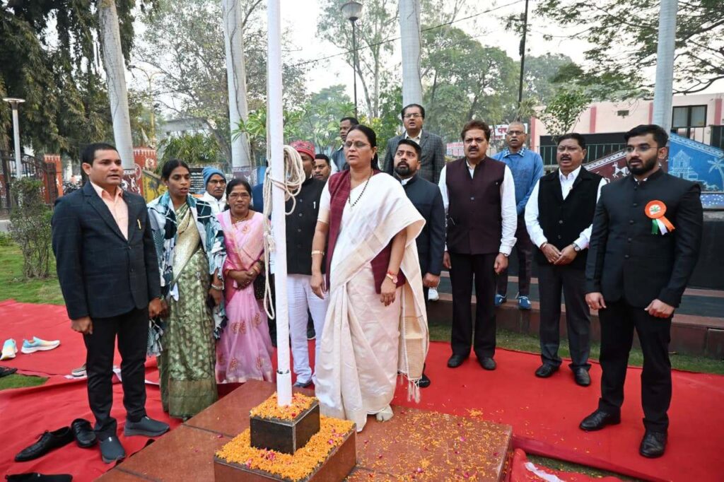 कोरबा – महापौर श्रीमती संजूदेवी राजपूत ने नगर पालिक निगम कोरबा के मुख्य प्रशासनिक भवन साकेत में आयोजित गणतंत्र दिवस समारोह में ध्वजारोहण किया। इस अवसर पर सभापति, नूतन सिंह ठाकुर, आयुक्त, आशुतोष पाण्डेय सहित पार्षदगण, जनप्रतिनिधिगण व निगम के अधिकारी कर्मचारी उपस्थित थे। 26 जनवरी गणतंत्र दिवस के पावन अवसर पर नगर पालिक निगम कोरबा के मुख्य प्रशासनिक भवन साकेत में गणतंत्र दिवस समारोह का आयोजन किया गया। आयोजन की मुख्य अतिथि महापौर श्रीमती संजूदेवी राजपूत ने इस मौके पर ध्वजारोहण किया तथा गणतंत्र दिवस की अपनी हार्दिक बधाई व शुभकामनाएं नगरवासियों को दी। इस मौके पर महापौर श्रीमती संजूदेवी राजपूत ने अपने उद्बोधन में कहा कि हमारा सौभाग्य है कि हम विश्व के सबसे बडे़ लोकतंत्र भारतीय गणराज्य के निवासी है, जहाॅं पर लोकतंत्र अपने सच्चे स्वरूप में विद्यमान है तथा हम सब इस लोकतंत्र के अभिन्न अंग हैं। उन्होने आगे कहा कि हमारे छत्तीसगढ़ में मान.मुख्यमंत्री विष्णुदेव साय जी की अगुवाई में विगत 02 वर्षो में राज्य सरकार ने प्रदेश का तेजी से विकास किया तथा प्रदेश के किसान, मजदूर, श्रमिक, गरीब, महिला, युवा एवं समाज के सभी वर्ग के लोगों के कल्याण के लिए दर्जनों योजनाए संचालित की, सैकड़ों जनहितकारी निर्णय लिए, जिनके परिणाम स्वरूप प्रदेश के लाखों, करोड़ो लोग इन जनकल्याणकारी निर्णयों से लाभान्वित हुए। विगत 02 वर्ष के दौरान कोरबा नगर निगम क्षेत्र के अंतर्गत विभिन्न विकास कार्यो हेतु विविध मदों से लगभग 800 करोड़ रूपये से अधिक की राशि स्वीकृति की गई, परिणाम स्वरूप निगम क्षेत्र में विकास को नई ऊर्जा मिली तथा क्षेत्र की जनता जनार्दन की इच्छा, मांग व उनकी आवश्यकता के अनुरूप विकास को गति व दिशा दी गई। इस हेतु मैं मान. मुख्यमंत्री श्री विष्णुदेव साय जी, उपमुख्यमंत्री व नगरीय प्रशासन मंत्री अरूण साव जी एवं उद्योग मंत्री लखनलाल देवांगन जी के प्रति कृतज्ञता व्यक्त करती हॅू, आभार ज्ञापित करती हॅू। उन्होने निगम आयुक्त आशुतोष पाण्डेय को बधाई देते हुए कहा कि उनके कुशल दिशा निर्देशन में हमारा नगर निगम कोरबा, शहर की स्वच्छता, नगर के विकास व शहर की व्यवस्थाओं को सुधारने की दिशा में बेहतर कार्य कर रहा है, मैं धन्यवाद देती हूॅं, अपने साथी पार्षदबंधुओं व बहनों का, जिनके अमूल्य सुझाव व सहयोग नगर के विकास के लिए मुझे लगातार प्राप्त हो रहे हैं। मैं साधुवाद देती हूॅं अपने अधिकारी कर्मचारियों को, जिनकी कर्तव्यनिष्ठा व परिश्रम की बदौलत हमारा नगर निगम नित नई उपलब्धियाॅं हासिल कर रहा है। उन्होने विशेष रूप से उल्लेख करते हुए कहा कि विगत कुछ माहों के दौरान शहर की स्वच्छता व साफ-सफाई व्यवस्था में ऐतिहासिक बदलाव आए हैं, हमार