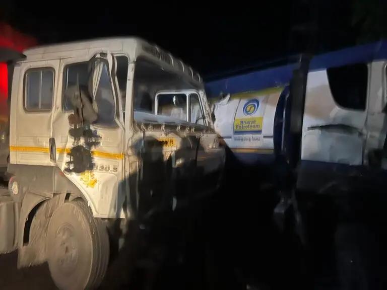 टैंकर ने ओवरटेक करने की कोशिश में ट्रक को मारी टक्कर, हादसे के बाद मार्ग पर लगा रहा लंबा जाम