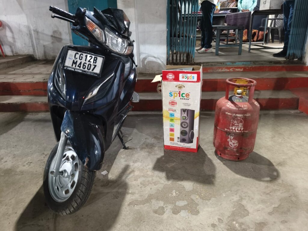 मामले में वैधानिक कार्रवाई की गई है। सीएसईबी पुलिस चौकी अंतर्गत पीपरपारा कोहड़िया में हंसराज खांडे निवास करता है। वह परिवार सहित विवाह कार्यक्रम में शामिल होने बाहर गया था। उसने अपने मकान में ताला जड़ा था। 1 से 6 अप्रैल के बीच चोरों ने सूने मकान में धावा बोल दिया। शातिर चोर नगदी रकम के अलावा चांवल, गैस सिलेंडर सहित अन्य सामान की चोरी कर फरार हो गए। विवाह कार्यक्रम से लौटने पर हंसराज को घटना की जानकारी हुई। उसने पुलिस चौकी पहुंचकर मामले की शिकायत दर्ज करा दी। मामले में पुलिस अधीक्षक सिद्धार्थ तिवारी ने कार्रवाई के निर्देश जारी कर दिए। उनके निर्देश एएसपी लखन पटले व सीएसपी कोरबा प्रतीक चतुर्वेदी के मार्गदर्शन चौकी प्रभारी भीमसेन यादव ने अपनी टीम के साथ आरोपियों की पतासाजी शुरू की। इस दौरान पुलिस को कुछ अहम सुराग हाथ लगे, जिसके आधार पर पुलिस ने बरपारा कोहड़िया निवासी गणेश चौहान उर्फ राहुल 19 वर्ष व दो नाबालिग से पूछताछ की। उन्होंने अपने साथियों के साथ मिलकर चोरी की बात स्वीकार कर लिया। उनकी निशानदेही पर पुलिस ने गैस सिलेंडर, होम थियेटर, नगदी रकम व एक्टिवा क्रमांक सीजी 12 बीएम 4607 को बरामद कर लिया। मामले में पुलिस ने वैधानिक कार्रवाई की है।